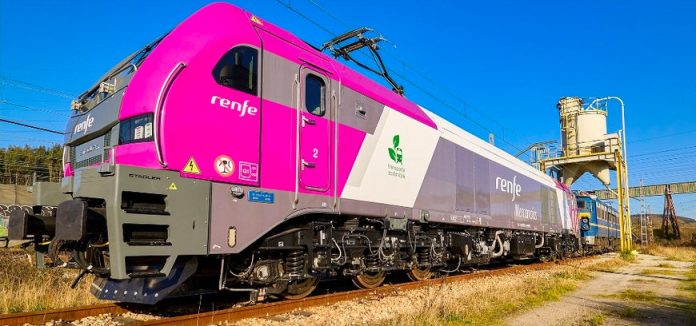 Estas locomotoras emiten ‘Cero CO2’ al ser 100% eléctricas y al tener certificado Renfe Mercancías el consumo de energía eléctrica proveniente de fuentes renovables.